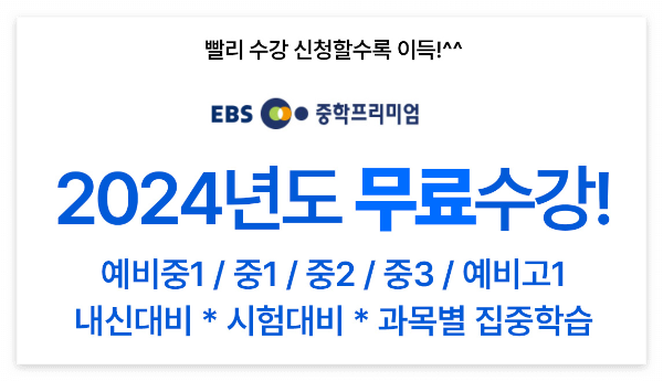 중학생 무료인강 - EBS 중학 2024년도 전학년 전강좌 무료수강!